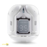 قرار دارد که میزان شارژ کیس و شارژ شدن هر بادز را نشان میدهد. پشت بدنه کیس نیز مدل هندزفری و سایر مشخصات آن نوشته شده است. در قسمت پایینی آن نیز درگاه