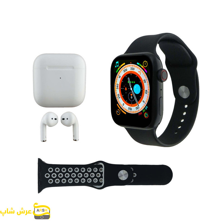 البته باید بدونید که همه نمونههای طرح اپل (از جمله همین مدل) امکان اندازهگیری شاخصهای سلامتی مثل سنسور اکسیژن، ضربان قلب یا فشار خون را نداره و اعداد نمایش داده شده فقط جنبه دکوری و نمایشی داره، بعضی از سنسورها هم که کار میکنه (مثل قدم شمار) ممکنه با خطای زیادی همراه باشه. خوب غیر از ساعت، یک هندزفری هم داخل این پک هست.